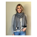 Grey scarf finished with a black and cream intarsia heart to both ends. 10% cashmere/90% wool.