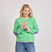 Rosie our beloved boxy crew shape, a top choice among our customers, returns in a striking new shade of emerald green. It features contrasting tipping and elbow patches in dark violet and pearl, creating a visually stunning colour combination.