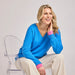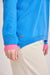 Sofia will introduce a touch of playfulness to your wardrobe, a timeless Azure blue boyfriend v-neck jumper. Featuring a striking double cuff in captivating candy pink, this comfy jumper has a relaxed fit that lends itself to a variety of styles.
