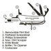 Includes 9 stainless steel tools: removable flint rod, x2 screwdrivers, saw, flint scraper, knife blade, bottle opener, tin opener and corkscrew. Packaged in gift box.