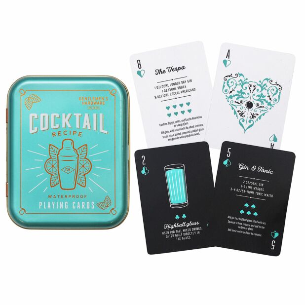 Recipe Glass Cocktail Shaker and playing cards