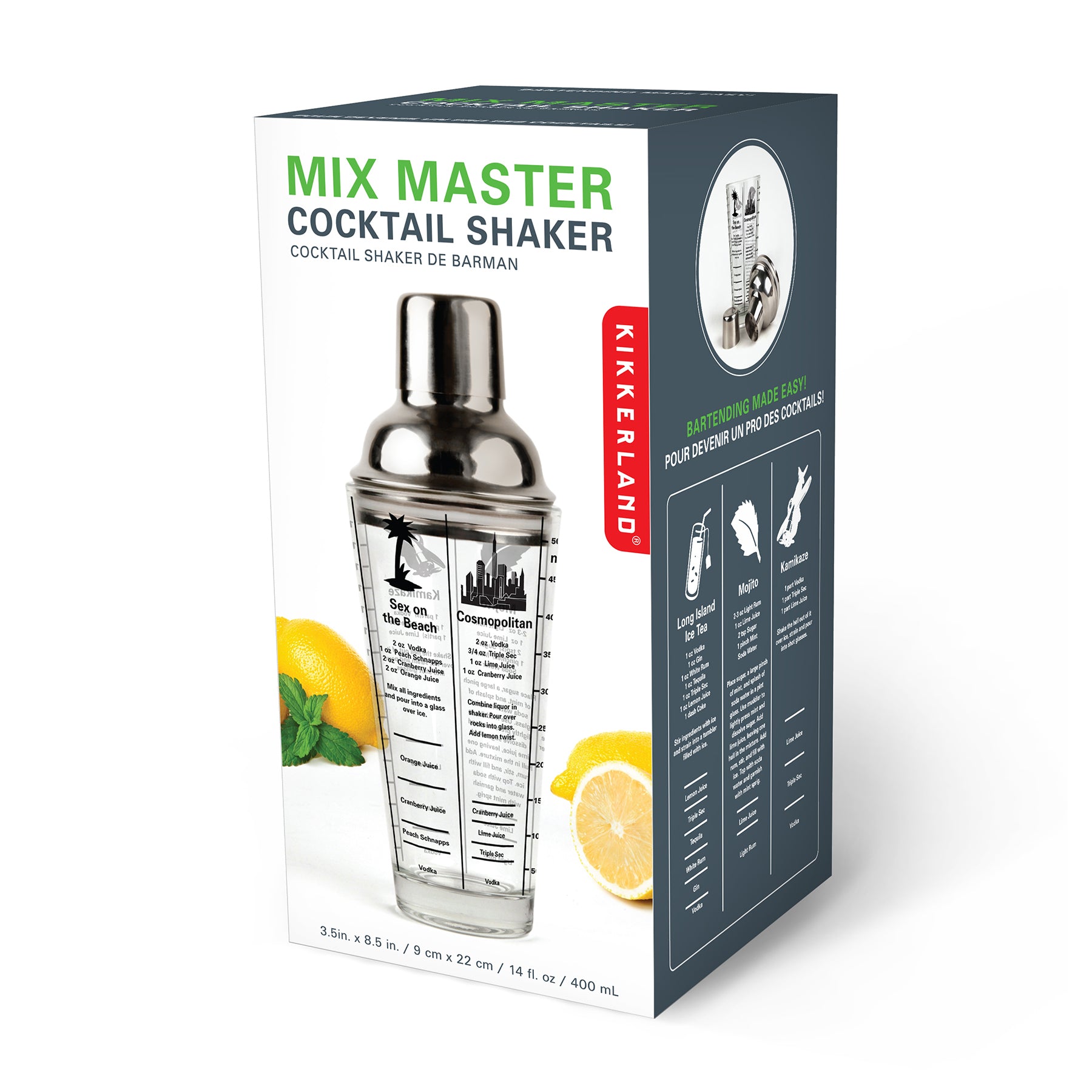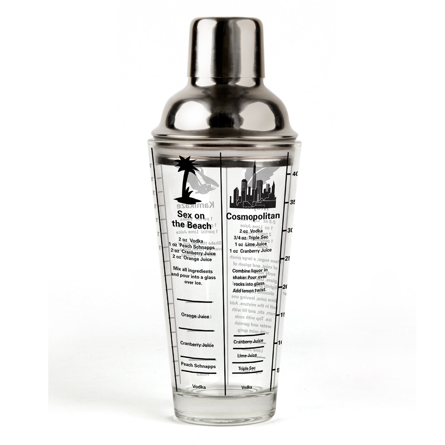 Fancy yourself a bartender? The Mix Master Cocktail Shaker has recipes and pour markings for six classic cocktails, making it easy to prepare perfect drinks.
