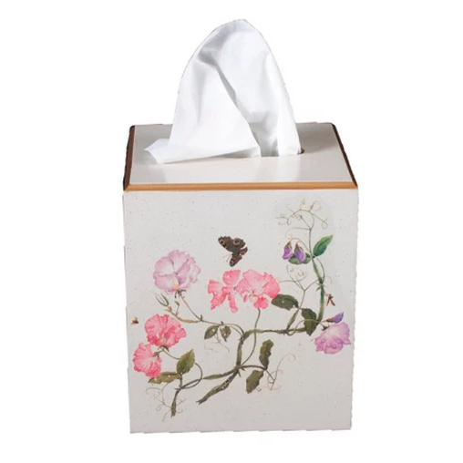 Cover up your tissue box with this hand decorated classical wooden designed tissue box cover. Made to fit a standard size tissue box. The box is lacquered finished with elegant floral or animal designs and hand gilded. Ideal for a bedroom, bathroom, cloakroom or kitchen. The attractive cove prevents moisture from getting near the tissues.