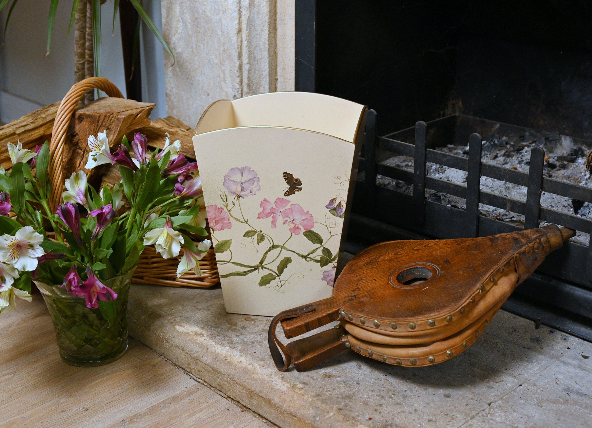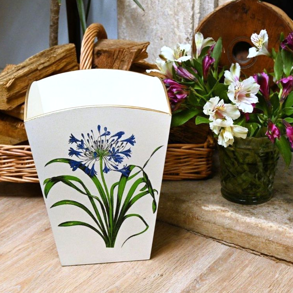 This elegant shaped waste paper bin is a great way to brighten up any bedroom, bathroom, drawing room or study. It looks stunning in the corner of a room. Hand made and decorated from sustainable wood, and finished with elegant hand gilding and a tough lacquer.