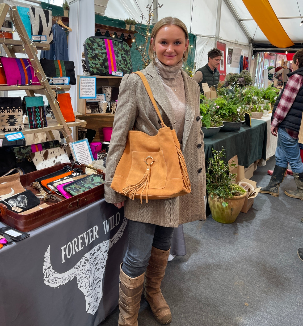 The gorgeous suede slouch tassel bag is part of the new Forever Wild branded collection.